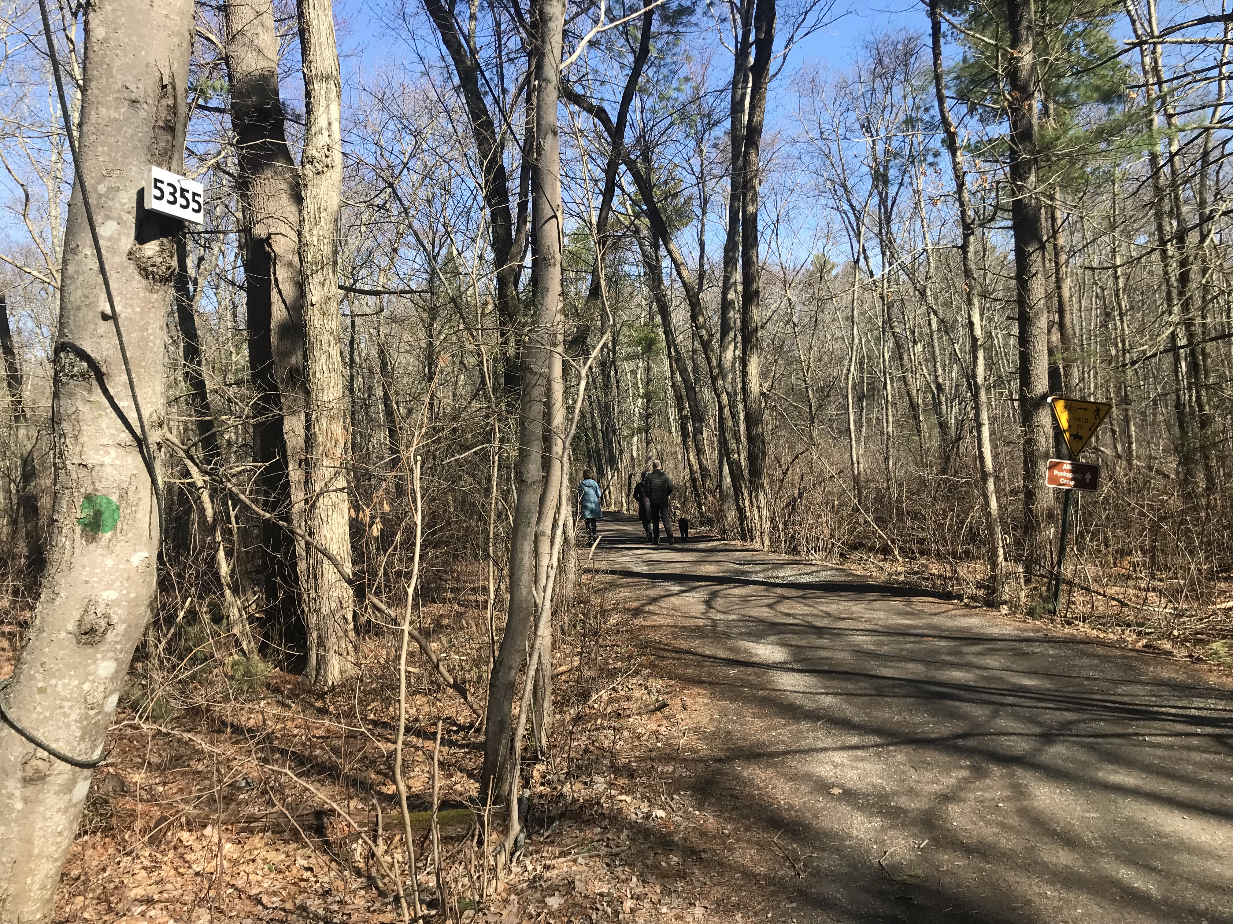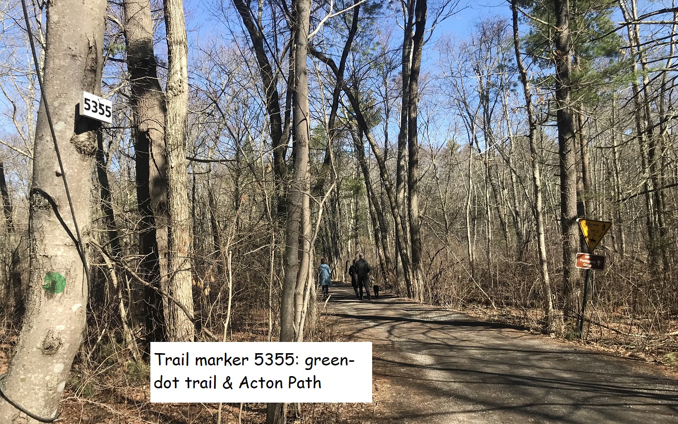 POINT 2: This trail isn't on the Blue Hills map -- it parallels the Acton Path and connects at trail marker 5355. I think it's where the electrical wires come in for the AMC huts -- which means the electric company maintains it (and we can use it!)
