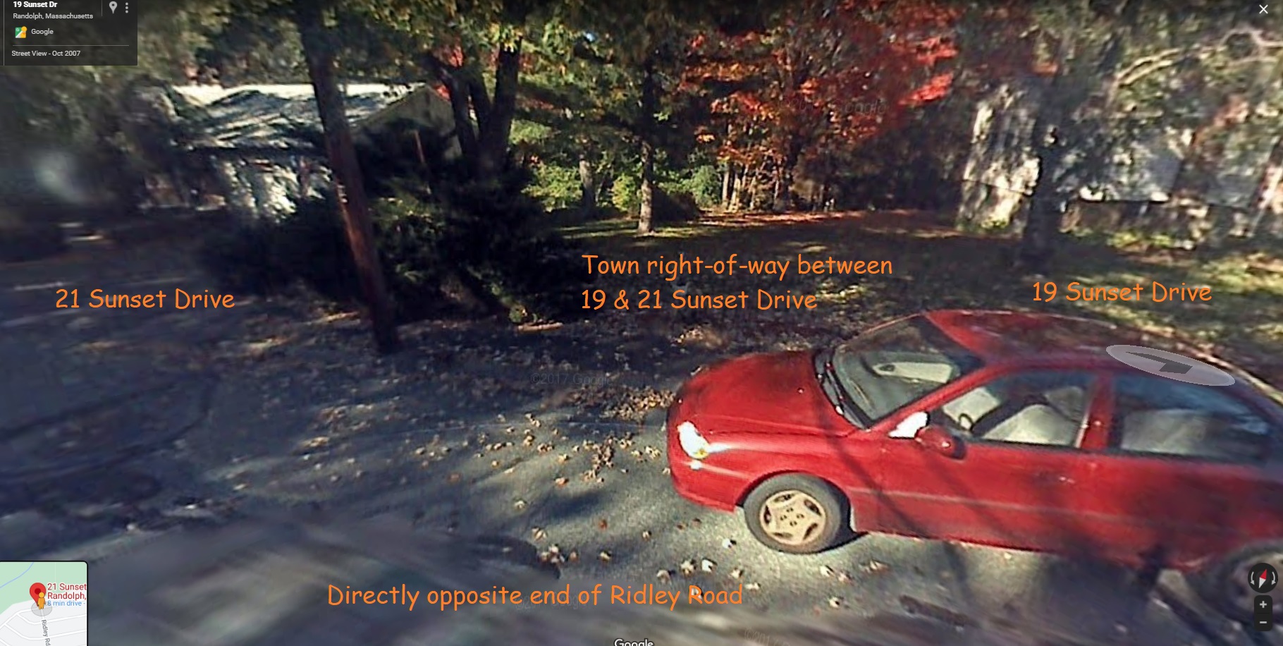 The street entrance to the gas line trail (intersection Sunset Drive and Connolly Street) is called "Jessie Key" -- I will check with Town of Randolph where exactly are the property lines -- this could be a nice neighborhood pedestrian entrance (but DCR looked with Judy and thought it was too residential, so I didn't include it on CPC funding list -- it'd be for next year)