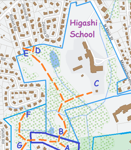 If Higashi School approves, additional footpath could connect northward to Randolph Greenway. If not, parcel #29-E-17.17 can connect northward too.